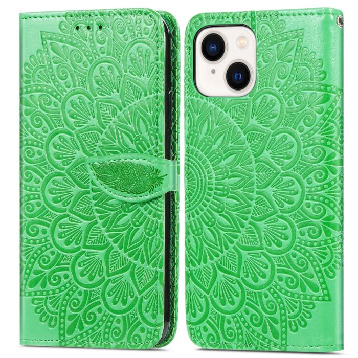 iPhone 15 Plus Fodral Läder Med Tryck Grön