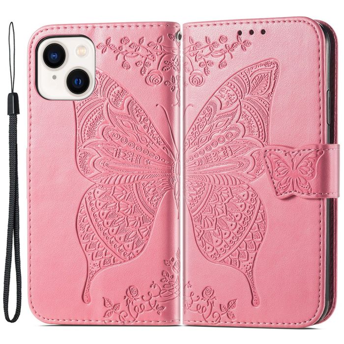 iPhone 15 Plus Fodral Med Fjäril Tryck Rosa