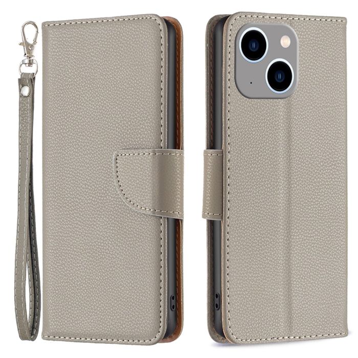 iPhone 15 Plus Fodral Shark Litchi Läder Grå
