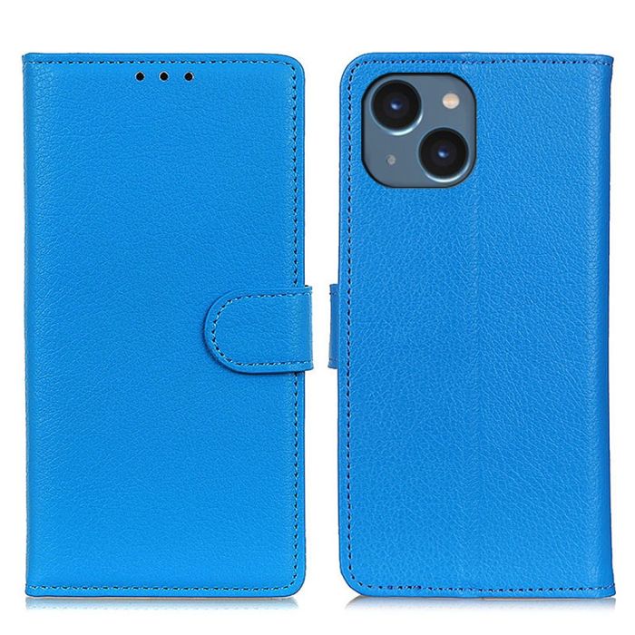 iPhone 15 Plus Fodral Litchi Läder Blå