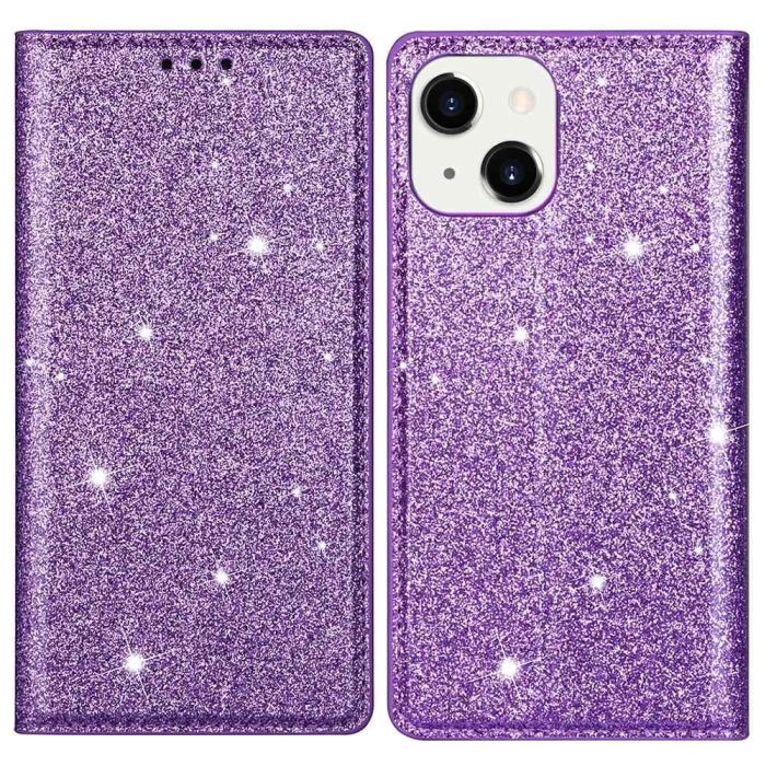iPhone 15 Plus Fodral Flip Glitter Lila