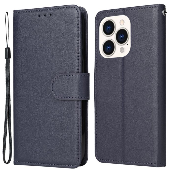 iPhone 15 Plus Fodral Solid Läder Med Snodd Blå