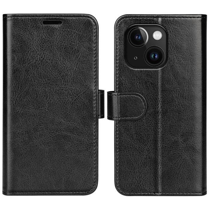 iPhone 15 Plus Fodral Crazy Horse Läder Svart