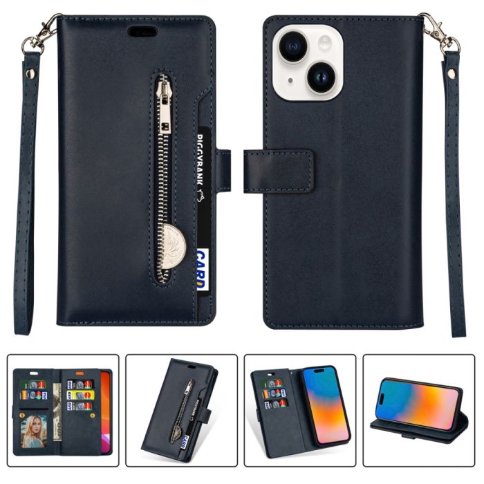 iPhone 15 Plus Multifunktionellt Fodral Mörk Blå