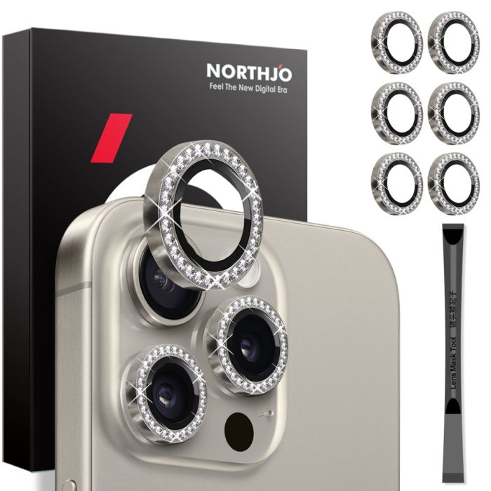 NORTHJO iPhone 15 Pro/Pro Max/14 Pro/Pro Max Linsskydd Strass 2-PACK Grå