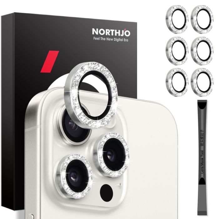 NORTHJO iPhone 15 Pro/Pro Max/14 Pro/Pro Max Linssskydd 2-PACK Glitter