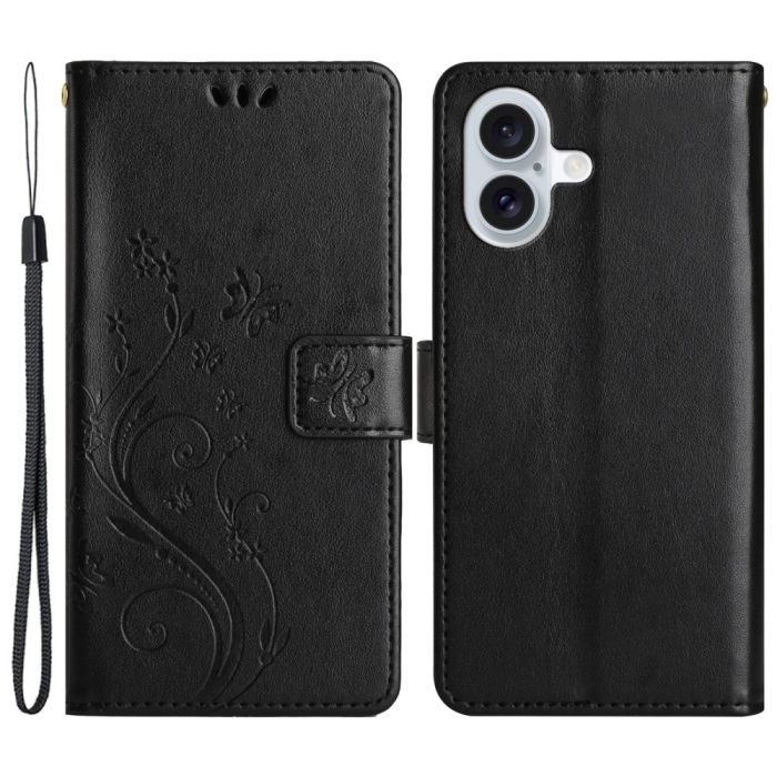 iPhone 16 Plus Fodral Med Blommigt Tryck Svart