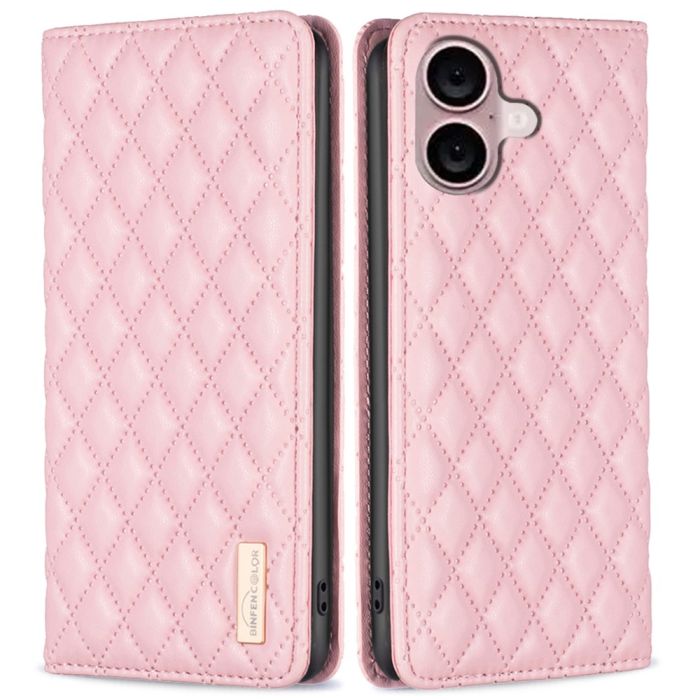 iPhone 16 Plus Fodral Diamond Flip Läder Rosa
