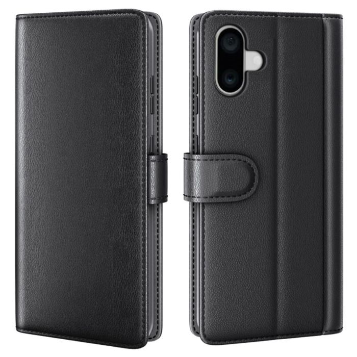 iPhone 16 Fodral Premium Äkta Läder Svart