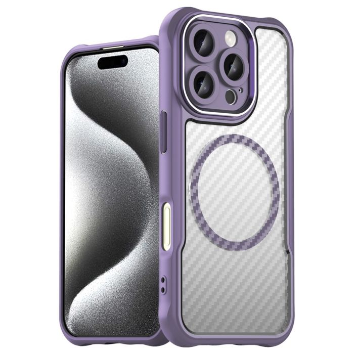 iPhone 16 Pro Max Skal MagSafe Hybrid Kolfiber Textur Lila