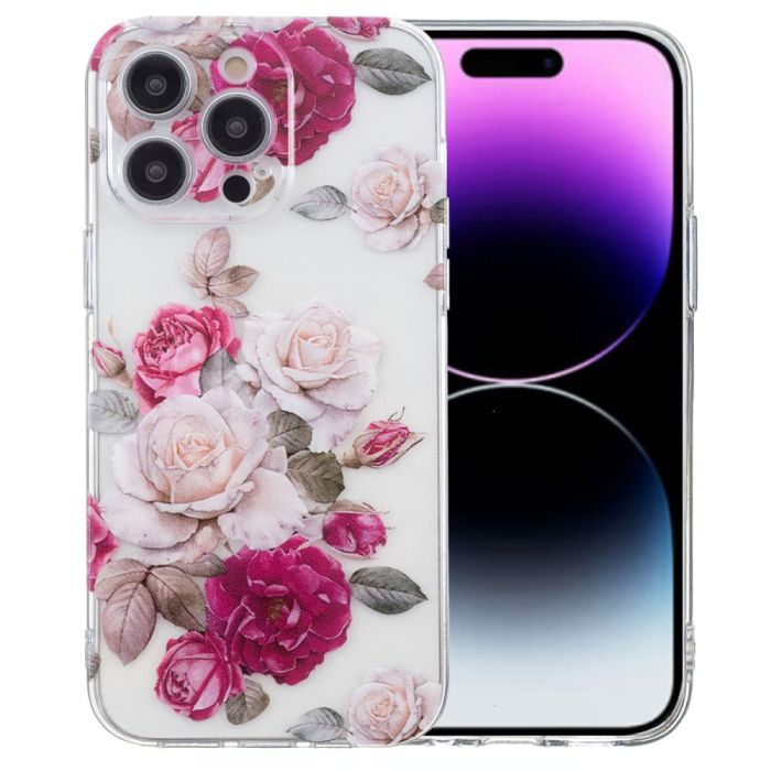 iPhone 16 Pro Skal TPU Blommer Rosa