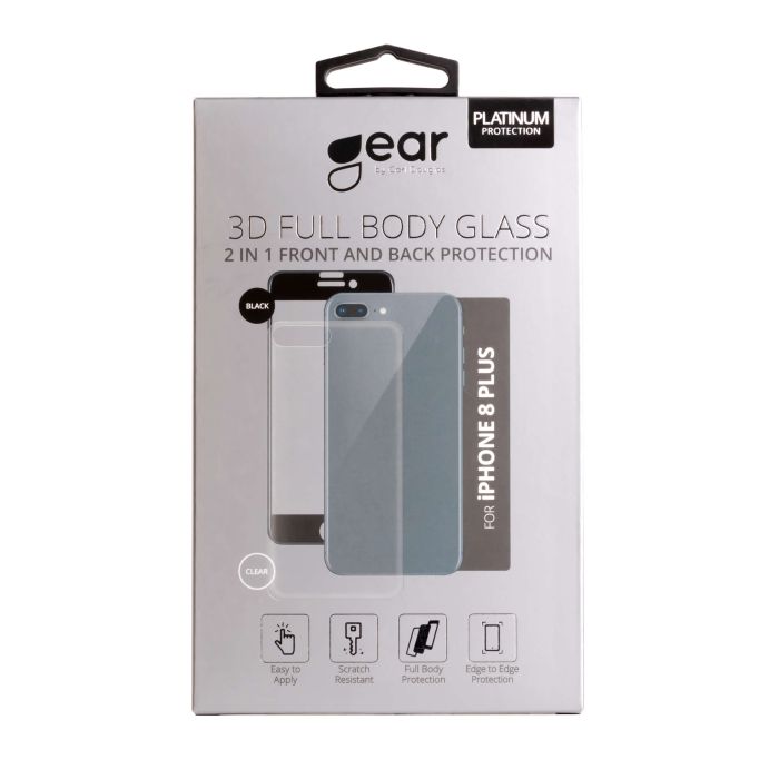 GEAR iPhone 8 Plus Fram/Bak Skärmskydd Härdat Glas 3D 2in1 med baksida