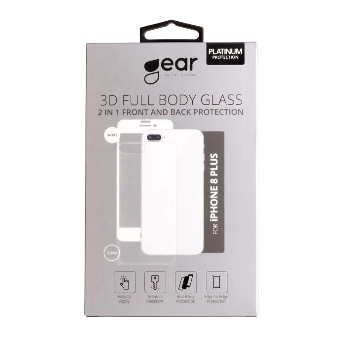 GEAR iPhone 8 Plus Fram/Bak Skärmskydd Härdat Glas 3D 2in1 med baksida