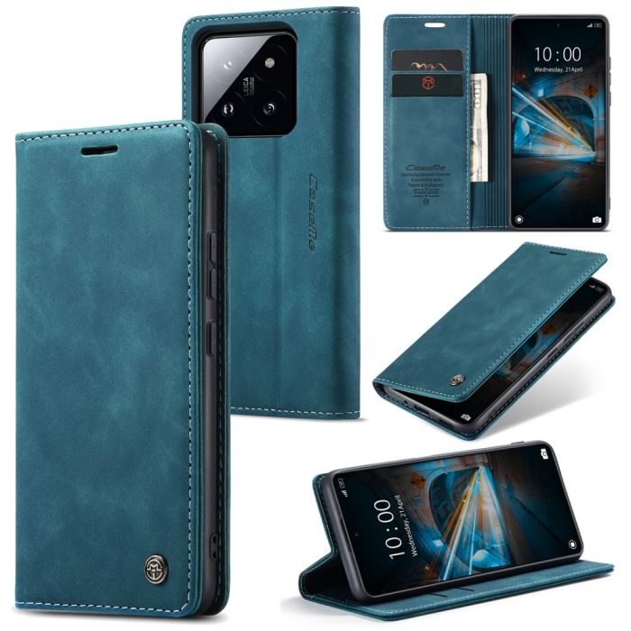 CASEME Xiaomi 14 Fodral Flip Läder Blå