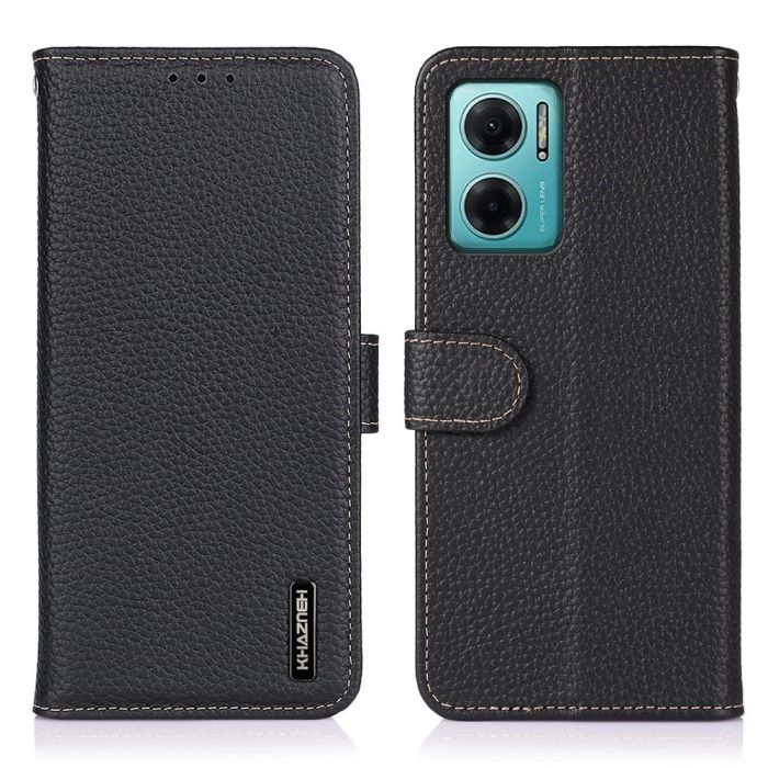 KHAZNEH Xiaomi Redmi 10 5G Fodral Litchi Äkta Läder Svart