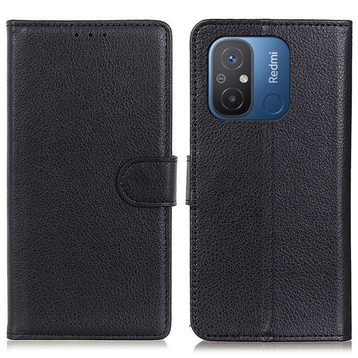 Xiaomi Redmi 12C 4G Fodral Läder Litchi Textur Svart