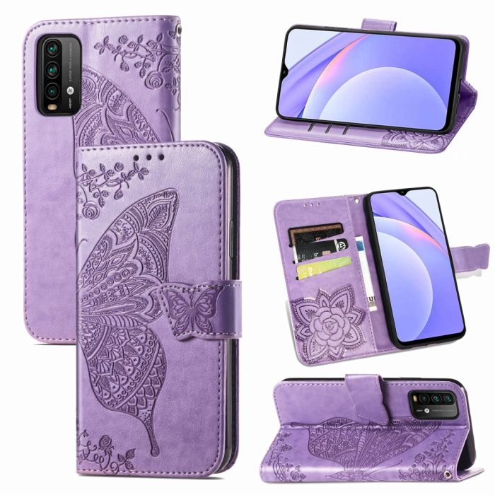 Xiaomi Redmi 9T - Butterfly Läder Fodral - Ljus Lila