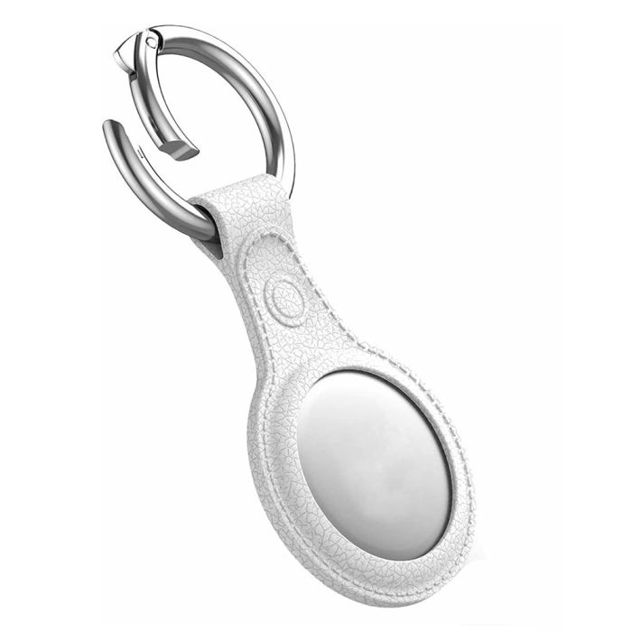 AirTag Hållare TPU Läder Textur Med Ringhållare - Vit