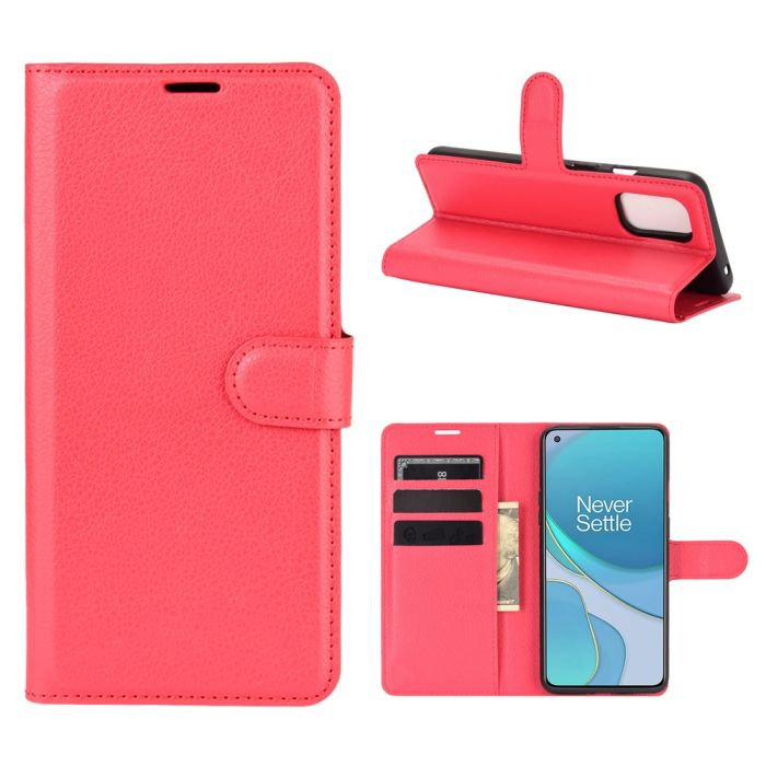 OnePlus 8T / 8T+ - Litchi Läder Fodral - Röd