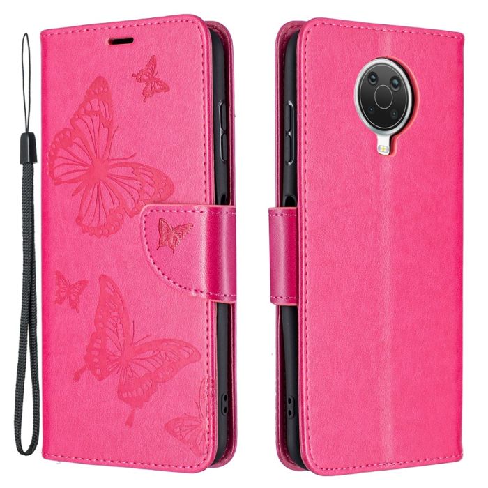 Nokia G10 / G20 Fodral Tryckt Butterfly Läder Rosa