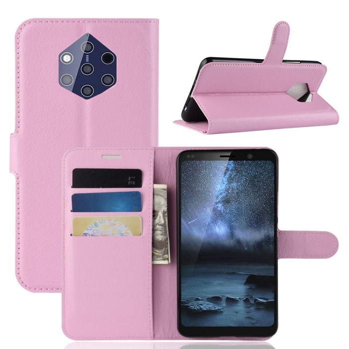 Nokia 9 PureView - Litchi Plånboksfodral - Ljus Rosa