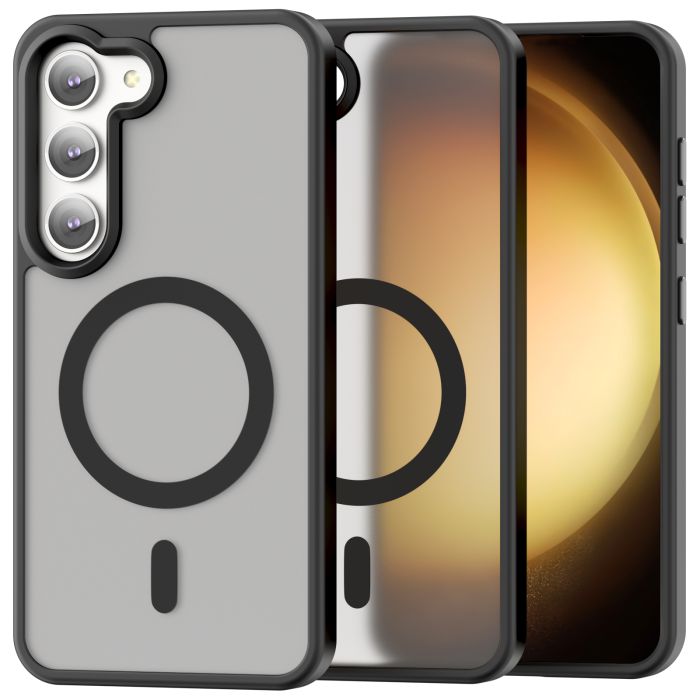 Detta är ett svart mobilskal till din Samsung Galaxy S23 med matt baksida och MagSafe-funktion från ColorPop - där sofistikering möter funktionalitet i en tidlös nyans!