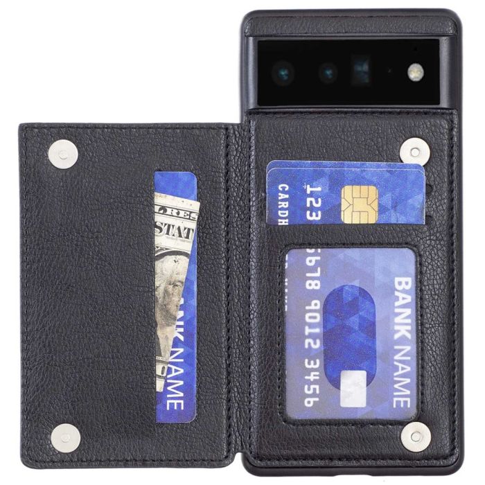 Google Pixel 6A Skal Läderbelagt Med Plånboksfunktion Svart