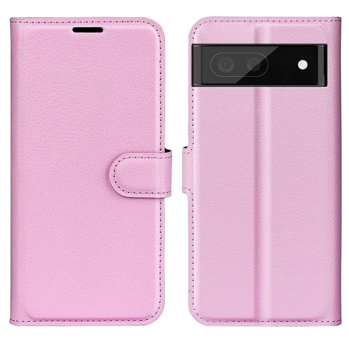 Google Pixel 6A Fodral Litchi Läder Ljus Rosa
