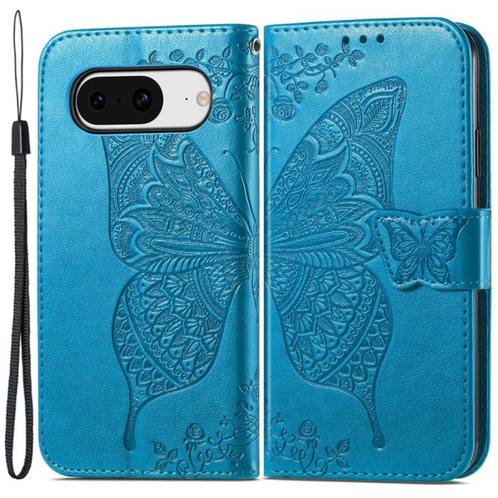 Google Pixel 8 Fodral Med Tryck Fjäril Blå