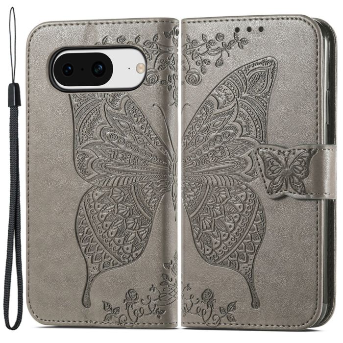 Google Pixel 8 Fodral Med Tryck Fjäril Grå
