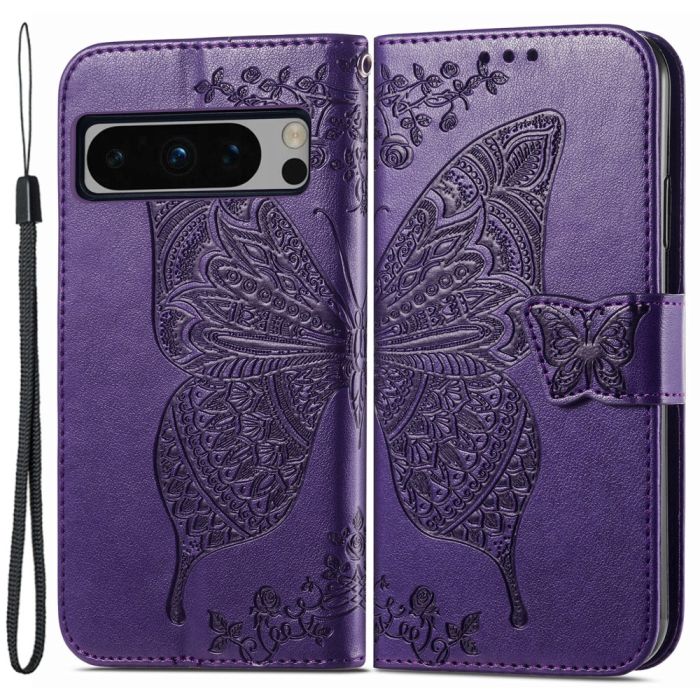Google Pixel 8 Pro Fodral Med Tryck Fjäril Mörk Lila
