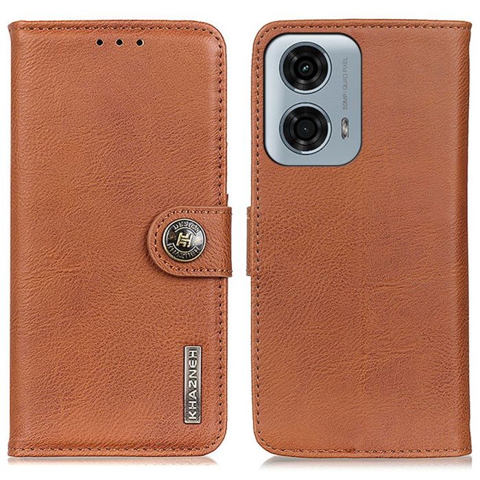 KHAZNEH Motorola Moto G04 4G/G24 4G Läder Fodral Brun