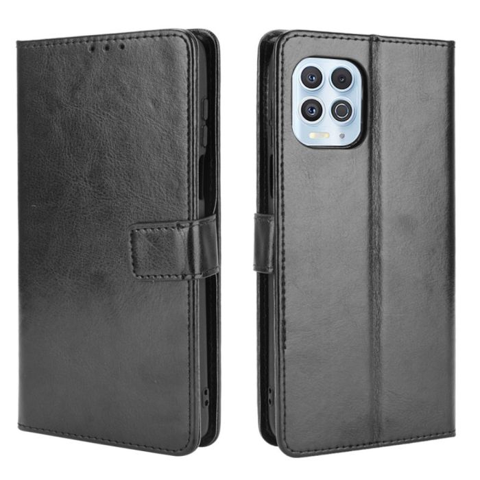 Motorola Moto G100 - Crazy Horse Läder Fodral - Svart