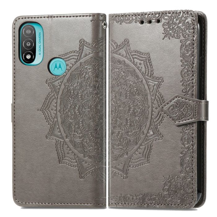 Motorola Moto E20 / E40 Fodral Mandala Läder Grå
