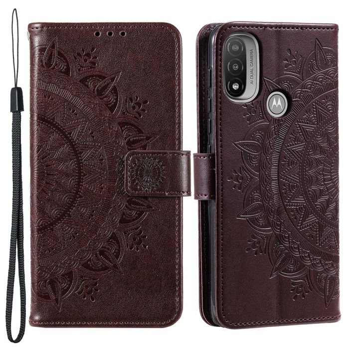 Motorola Moto E20 / E40 Fodral Mandala Läder Brun