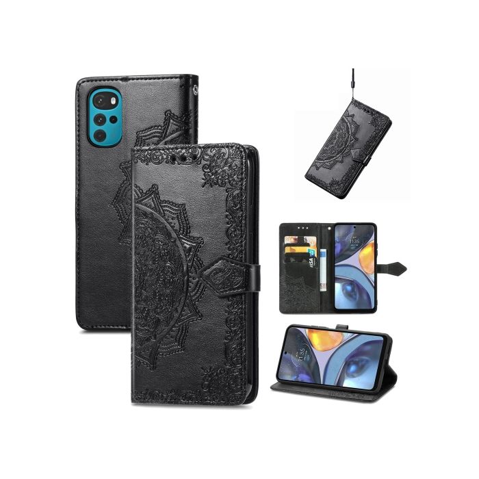 Motorola Moto G22 Fodral Mandala Läder Svart
