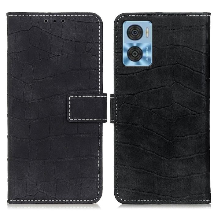 Motorola Moto E22i Fodral Krokodil Textur Svart