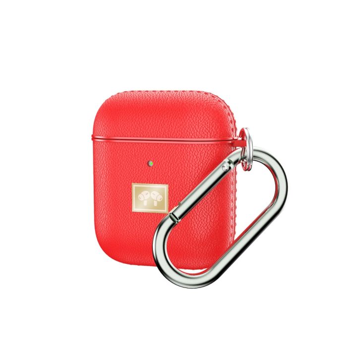 Skal i stilig litchitextur för Apple AirPods. I detta kit ingår även en krok.